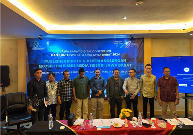 Acara Konferwil ke-3 AMSI Jabar 2024, diawali dengan kegiatan seminar dengan tema "Publisher Rights dan Keberlangsungan Ekosistem Bisnis Media Siber di Jawa Barat". Seminar ini menghadirkan pembicara, Ketua Umum AMSI Wahyu Dhyatmika, Ketua Persatuan Wartawan Indonesia (PWI) Jabar Hilman Hidayat dan pakar jurnalistik Universitas Islam Bandung (Unisba) Prof Dr Septiawan Santana. Sekretaris Daerah Jabar Herman Suryatman dan Kadiskominfo Kabupaten Bandung Yosep Nugraha, mewakili Bupati Bandung Dadang Supriatna yang berhalangan hadir, turut memberikan pandangannya tentang masa depan media di Jawa Barat. Keduanya mengajak media siber di AMSI berkolaborasi dengan pemerintah dalam meningkatkan literasi digital masyarakat. Dengan demikian, masyarakat di Jawa Barat mendapatkan pencerahan atas informasi yang dibaca dan kebal terhadap paparan berita hoaks. Kegiatan seminar dan Konferwil ke-3 AMSI Jawa Barat 2024 didukung oleh sejumlah mitra, Pemerintah Kabupaten Bandung, Pemerintah Provinsi Jawa Barat, Djarum Foundation, PDAM Kabupaten Bogor, Bank BJB, Pupuk Kujang, dan Migas Utama Jabar. (*) [gallery link="file" size="medium" ids="8118,8123,8122,8121,8120,8119"]