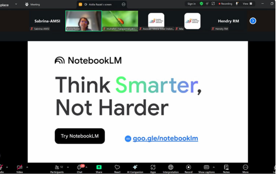 Selain itu, peserta juga menjajal Notebook AI, platform riset multimodal dan multibahasa yang membantu proses brainstorming ide dan penyusunan naskah berita.